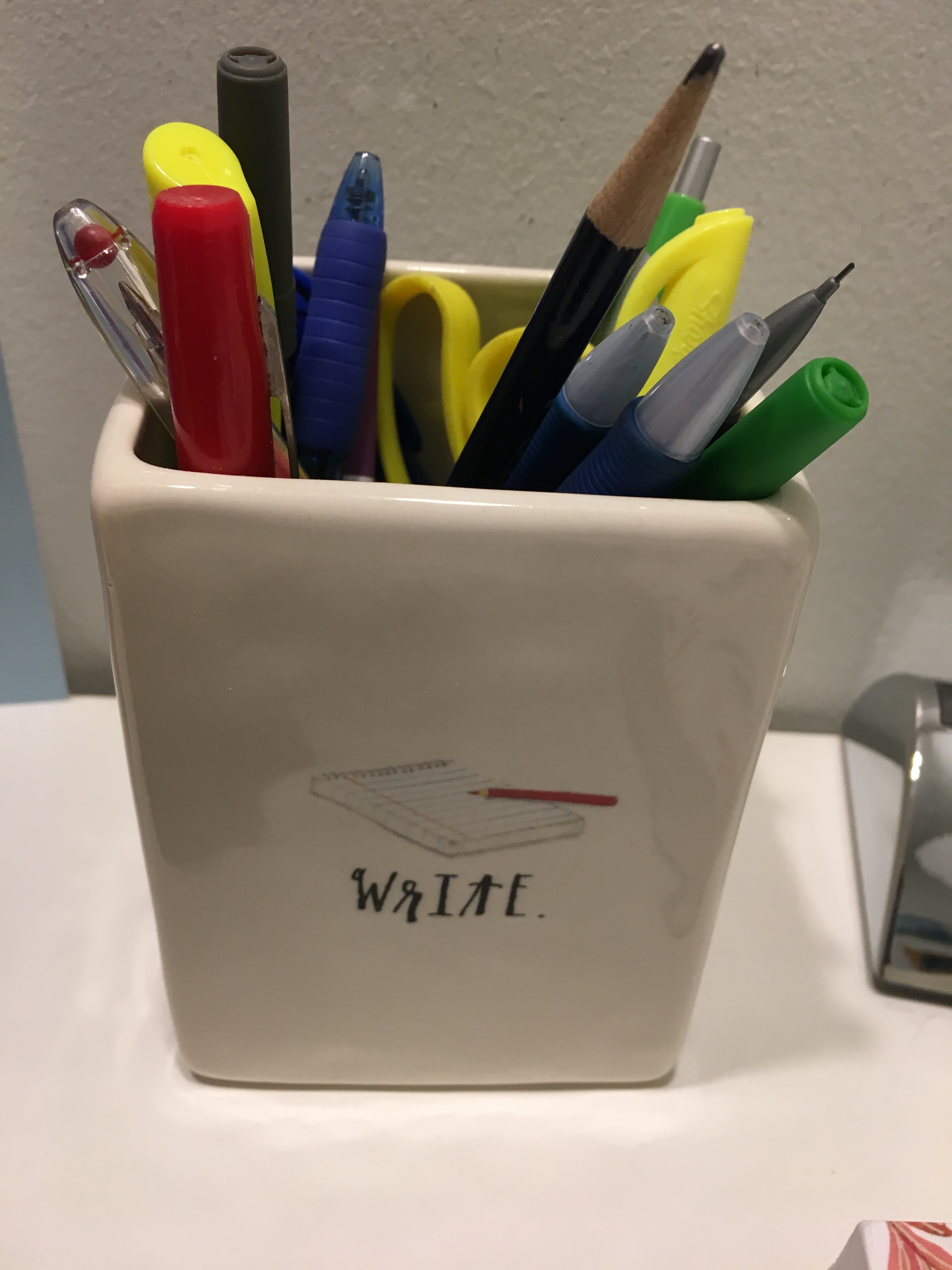 Just like I like to come home to a clean kitchen (no dishes in the sink, etc.), I knew it would make me happy to come back to all freshly sharpened pencils. (I know, a little weird, but there you have it.)