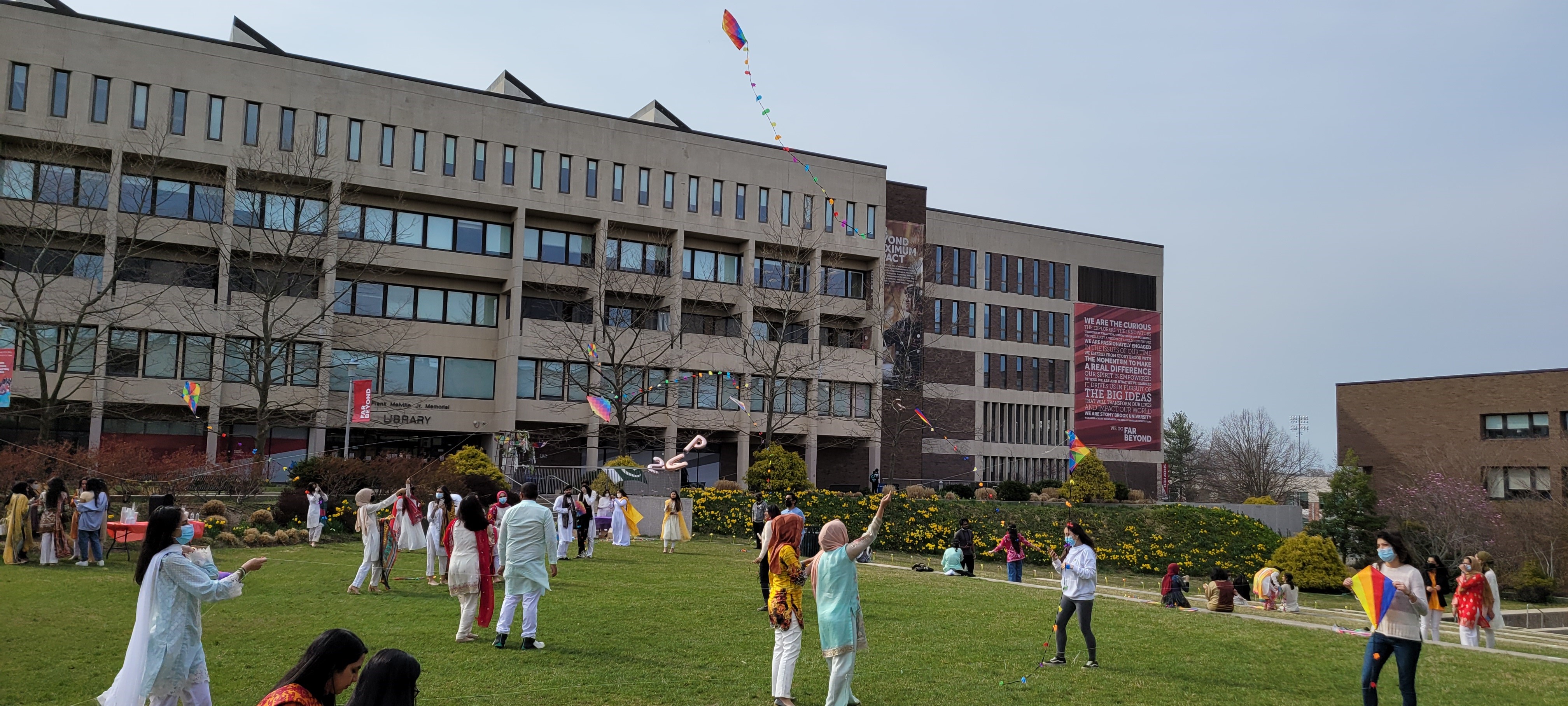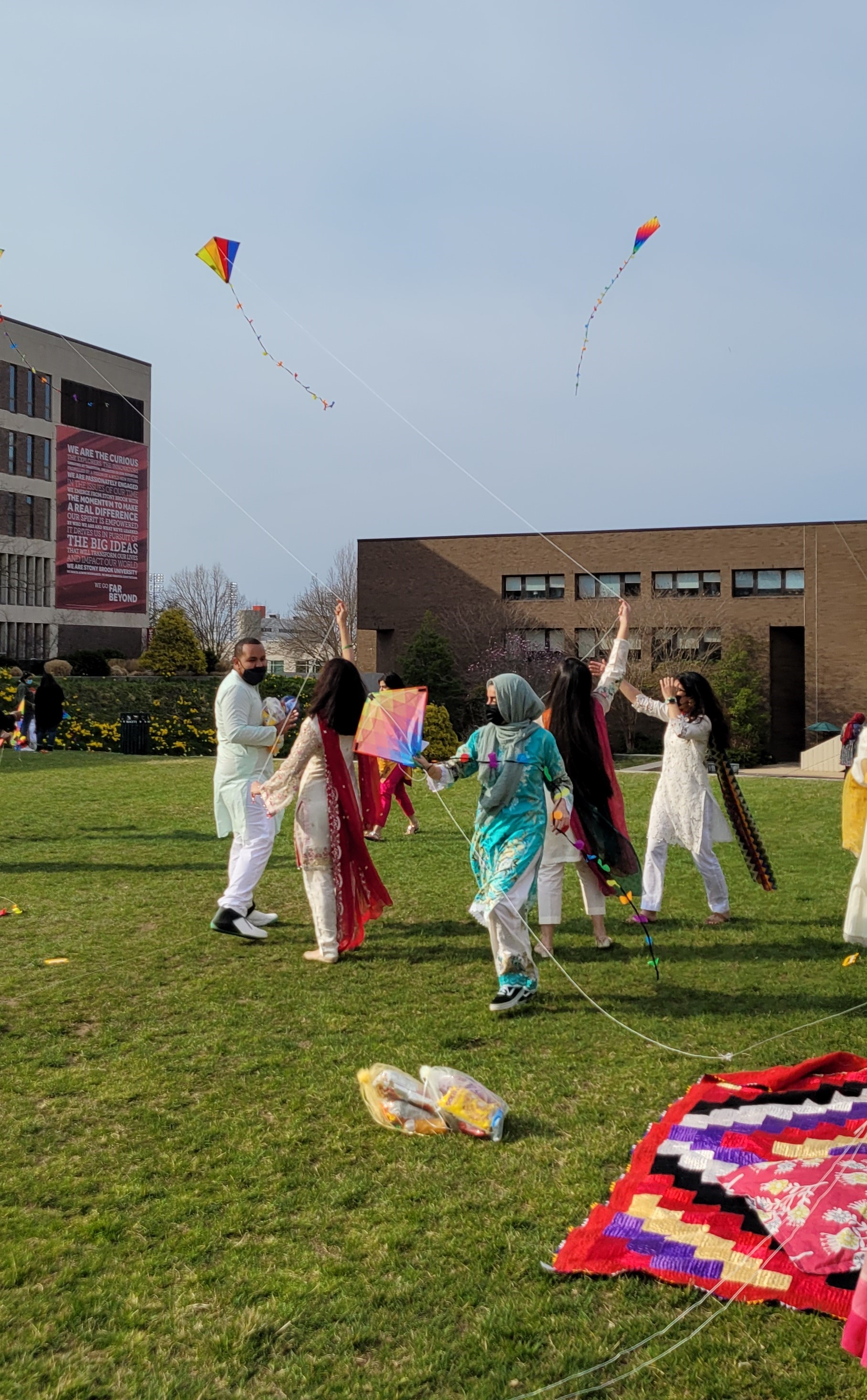 Last Friday, though, really heralded the start of spring for me with an event I was elated to see unfolding all day right outside my office – the Pakistan Students’ Association’s (SBU PSA) annual “Basant” celebration. As I learned, Basant is a nationwide festival in Pakistan that welcomes spring. The most noteworthy aspect is kite flying, with whole neighborhoods coming together to fly them and celebrate unity. There was DJ’ed music, food, games and “lots of good vibes” out on the grassy field and steps outside the Staller Center for the Arts on campus. And it was the first live event in the last year or so for the group.